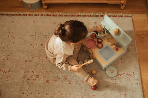 Start med basisudstyr som gryder, pander og redskaber. Senere kan du udvide med legetøjsmad, forklæder og service. Mange børn elsker at “servere” for familien, så et lille bord eller serveringsbakke kan gøre legen endnu sjovere.