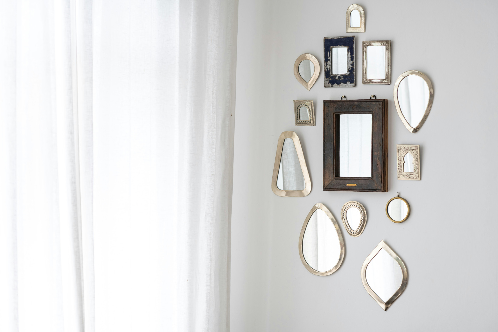 Spejlets form påvirker rummets udtryk. Runde spejle skaber blødhed og harmoni, mens firkantede eller ovale modeller giver et mere struktureret look. Størrelsen bør afstemmes efter væggen og rummet – et stort spejl kan åbne et lille rum, mens et mindre spejl kan fungere som en elegant detalje.